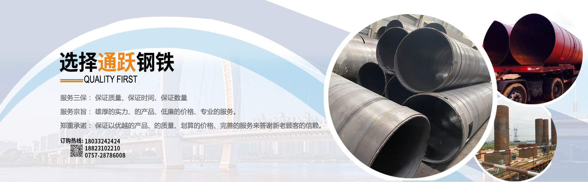 佛山市通躍鋼鐵有限公司 電話188-2310-2210 0757-28786008 擁有多條美國先進的螺旋鋼管生產線,生產直徑φ159-φ3620mm(壁厚6mm-20mm)的雙面埋弧螺旋焊鋼管,年生產能力15萬噸。 生產螺旋管 螺旋鋼管 螺旋焊管 規(guī)格厚度6mm-20mm 直徑159mm-3620mm 有多條鋼板卷管機生產規(guī)格厚度6mm-70mm 直徑400mm-5020mm 螺旋管 螺旋鋼管 鋼護筒 焊接鋼護筒 鋼板卷管 丁字焊管 加工格構柱 鋼管樁 材質Q235B Q345B Q235A 45# 20# Q420D Q390D 錳板 歡迎來電報價,公司配有大型型材 鋼板倉庫,大量各種規(guī)格現(xiàn)貨H型鋼 槽鋼 角鋼 工字鋼 鋼板,鍍鋅方管 鍍鋅產品 產品可以定尺定長,提供打砂,除銹,上油漆,公司配有防腐加工廠,專業(yè)對鋼管進行內外壁防腐加工,鋼管外壁主要有三油兩布,五油三布,環(huán)氧煤瀝青及環(huán)氧樹脂漆,各種高分子涂料。 ......